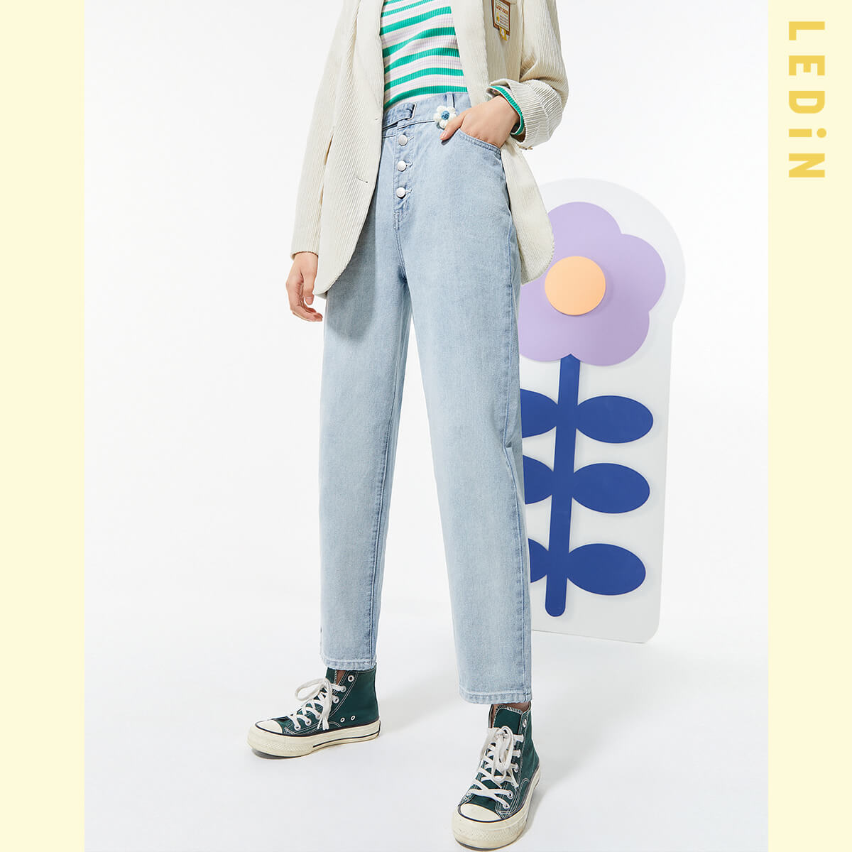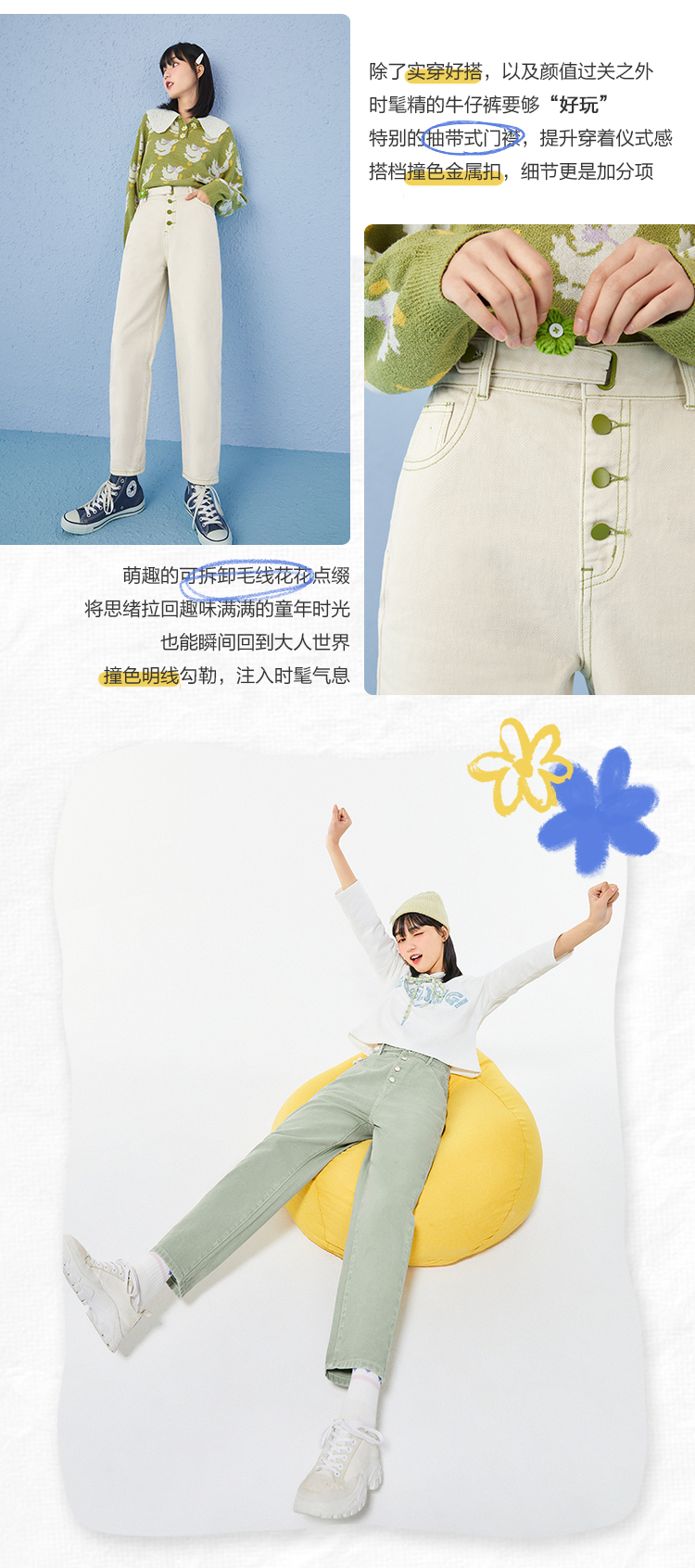 7分鐘前直筒牛仔褲女2021年春季新款褲子女裝童趣花花牛仔褲寬鬆 - 套餐二 買1送1-NT$1599